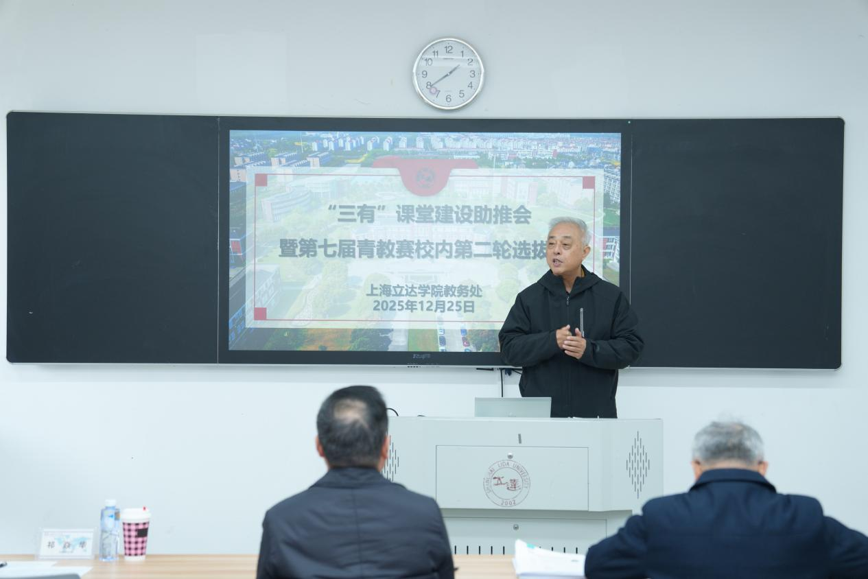 12月25日,“三有”课堂建设助推会暨第七届青年教师教学竞赛校级第二轮选拔赛在3203教室成功举办。活动特邀蔡红教授、董大奎教授担任评审,八名经首轮选拔脱颖而出的青年教师同台竞技,一展教学风采。